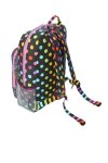 Features include multiple slip and zippered pockets, padded straps, a reinforced grab handle, and a padded sleeve to hold binders, books, or electronic devices.
